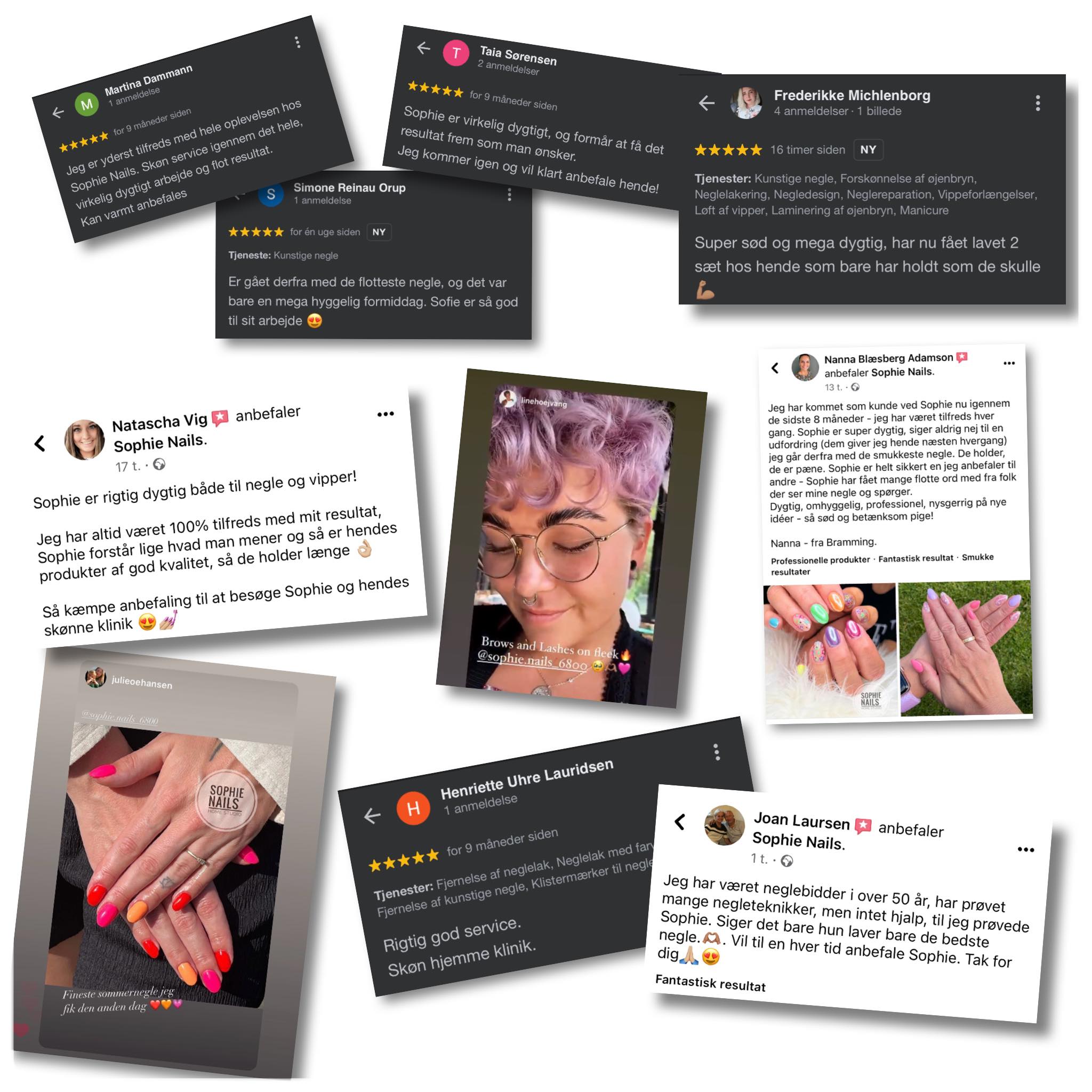 Sophie er den sødeste. ❤️⭐️⭐️⭐️⭐️⭐️ Hun laver de smukkeste negle💅🏻 Og er altid med på noget smart, og et nyt og frisk look. Med lækker farver og pynt. 🥰 Holder godt, selvom man er hårde ved dem.👏🏻 Nyder at komme i hendes lille klinik, ca. hver 4 uge. - Lisa J